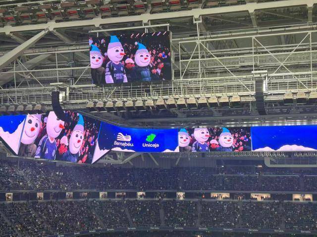 圣诞节将至,马德里市中心挤满了外出采购的土产货住户和外来搭客,伯纳乌球场也迎来皇马战塞维利亚的2025年收官之战。之前的流畅两个主场比赛,皇马先是在联赛中连吃两红牌被塞尔塔掀起,随后又在阵势不算差的情况下输给曼城,用主场告成为2025收官,不仅是保住阿隆索帅位的压根,亦然对简直坐满全场的皇马球迷的最好回馈。和马德里街头林林总总标圣诞彩灯相通,伯纳乌在圣诞前终末一战的赛前庆典中也将节日氛围拉满,现场屏幕给到的球迷镜头中,皆被加上了圣诞帽和圣诞老东谈主装璜的AI殊效,现场DJ也为整个来现场不雅赛的球迷送出了祝愿,并轮回播放起圣诞主题歌曲,伴跟着让东谈主目不暇接的现场灯光秀和首发威望报送。